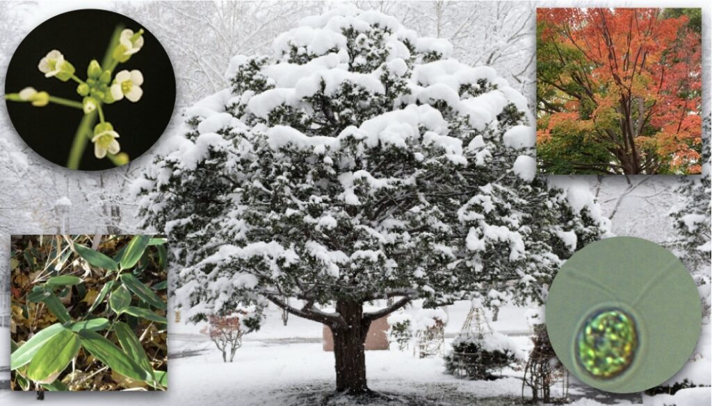 光合成は地球上の多くの生態系を支える重要な反応ですが、環境の変化に影響を受けやすい側面も持っています。私たちは、さまざまな環境変化に対して、植物や藻類がどのように適応しているのかを、生化学、分子生物学、生理学の手法を駆使して研究しています。とくに(1)北海道を含む寒冷圏に生息する植物に特徴的な光合成、(2)藻類の多様な光合成と陸上植物への進化、(3)紅葉・黄葉に関わるクロロフィル代謝などの課題、(4)生育環境の季節変化に対する林床ササの光合成系の応答 に取り組んでいます。